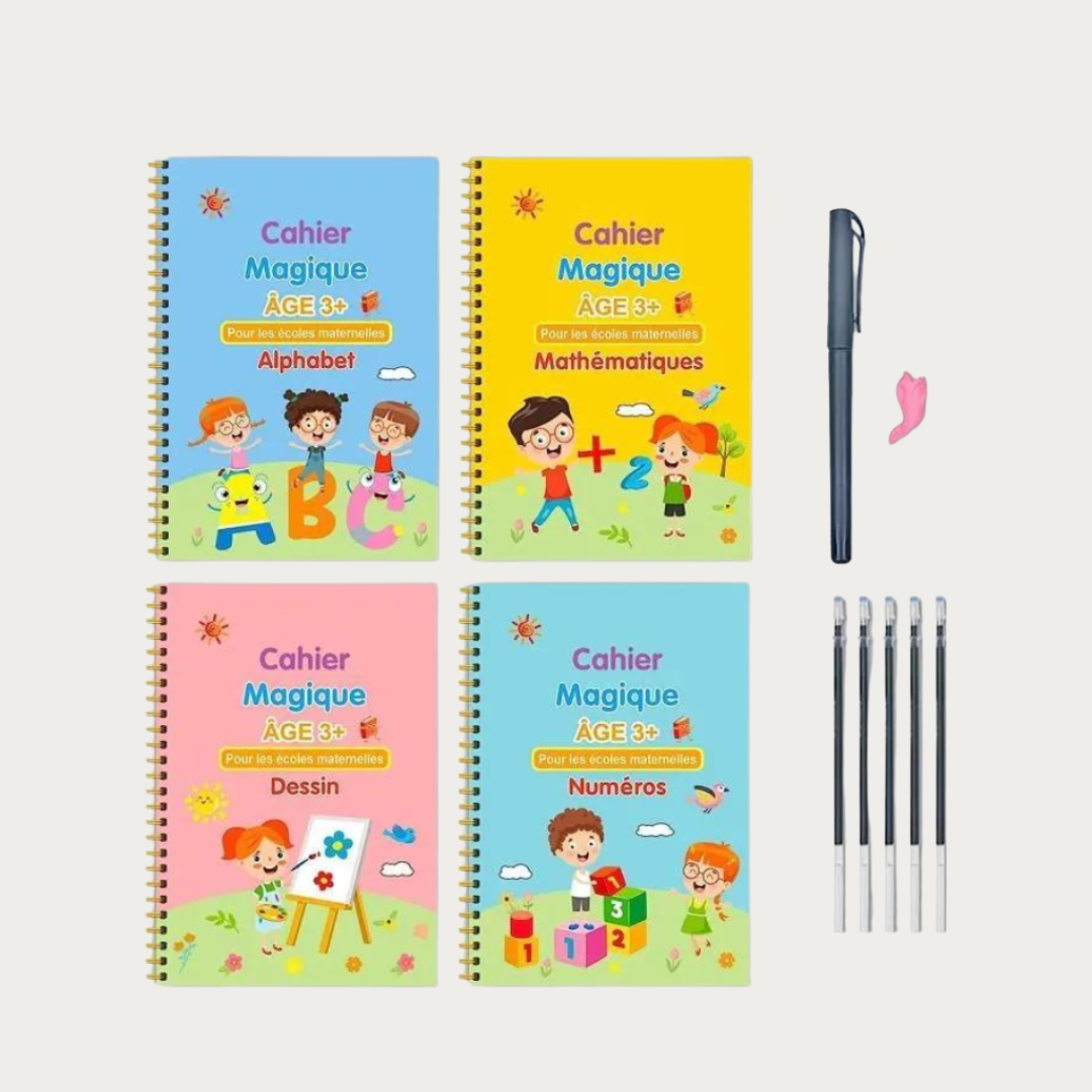 Chaque trait est corrigé naturellement par la pratique, sans stress ni crainte de se tromper. Le coffret comprend 4 livrets éducatifs pour maîtriser alphabet, calculs, dessins et bien plus encore.