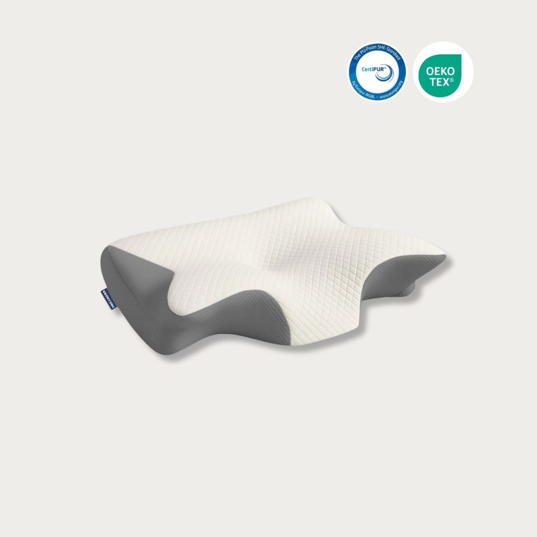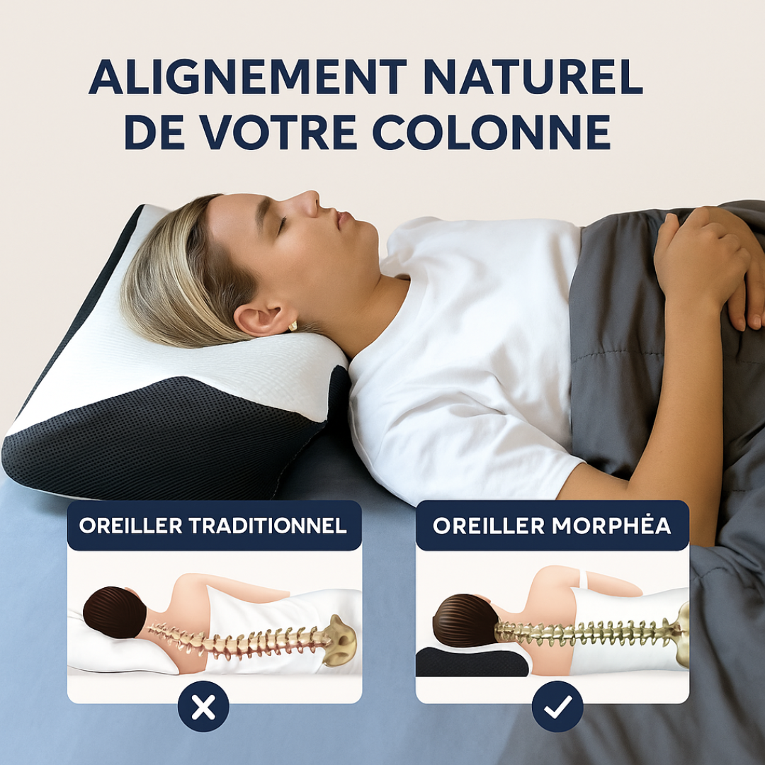 Morphéa™ est conçu pour aligner naturellement votre tête, vos cervicales et votre colonne, et vous offrir un sommeil vraiment réparateur.