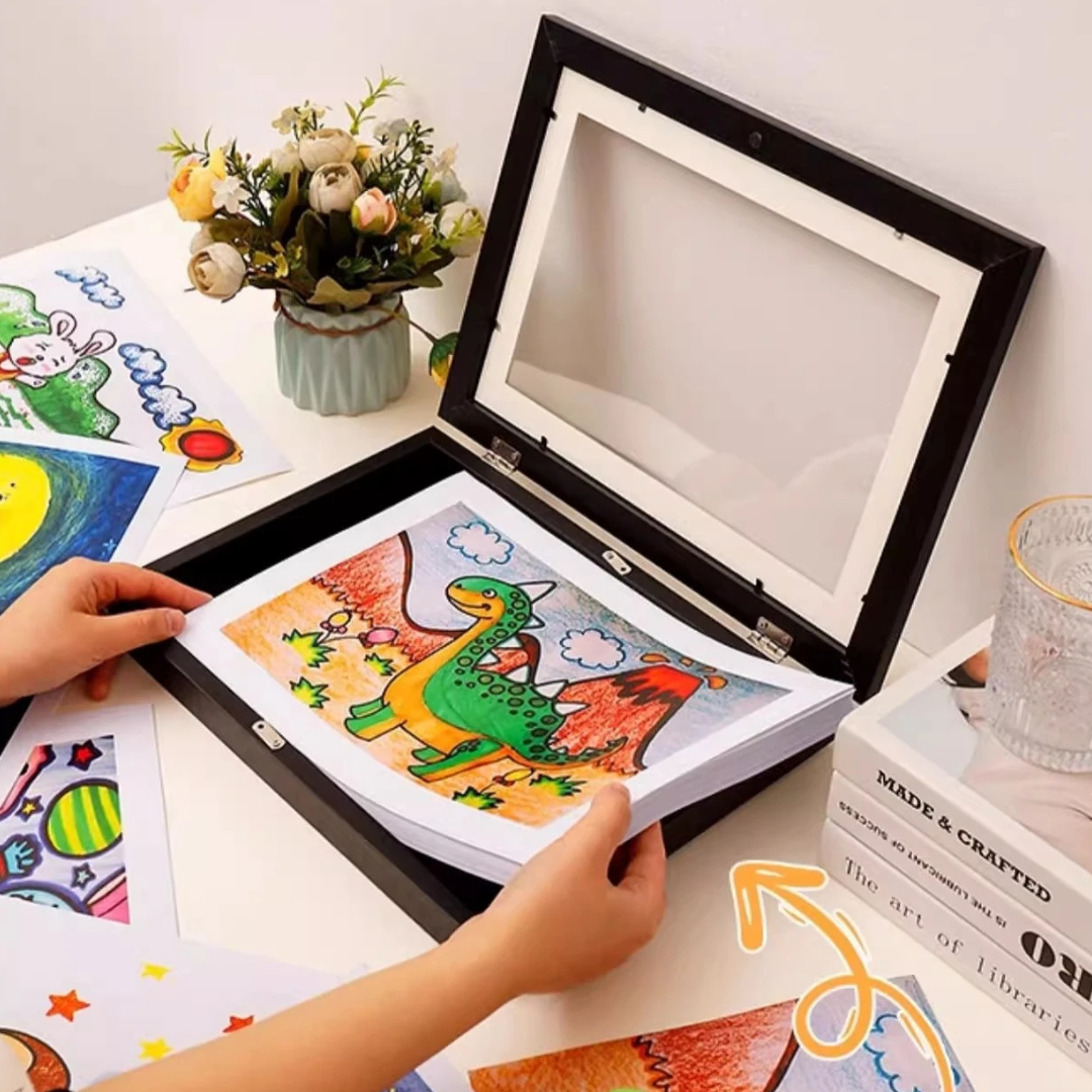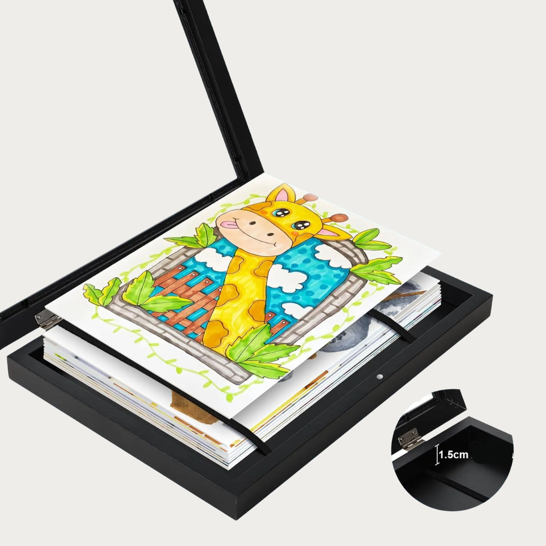 PetitMusée™ allie design élégant, grande capacité et praticité inégalée pour transformer chaque création enfantine en souvenir précieux et visible.