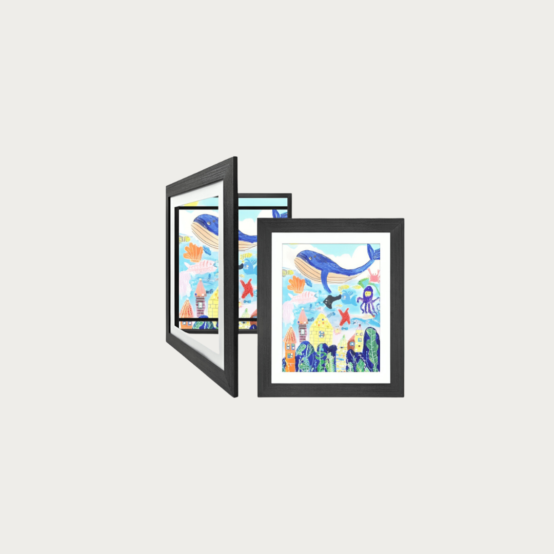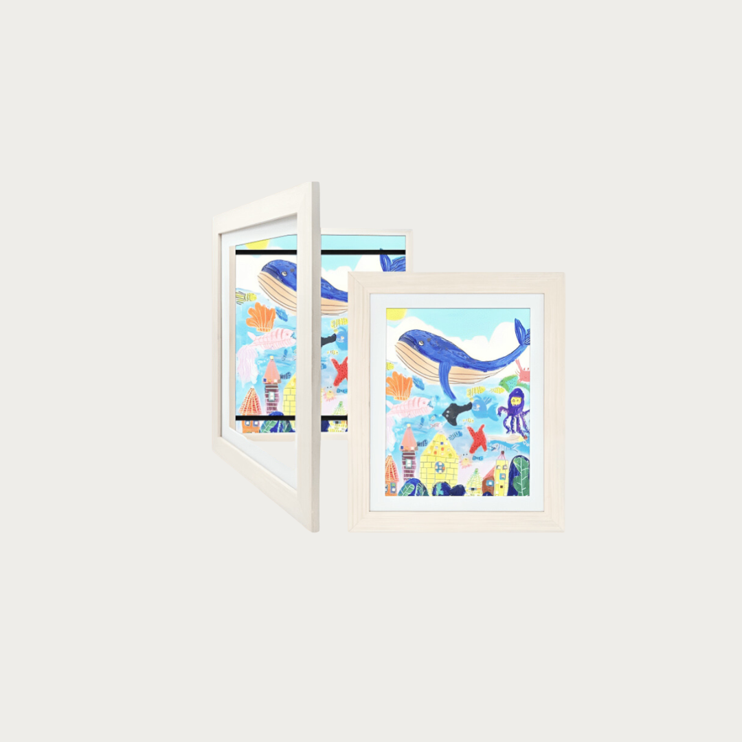 Accrochez-le au mur, insérez la première création et laissez PetitMusée™ devenir le cœur artistique de votre maison.