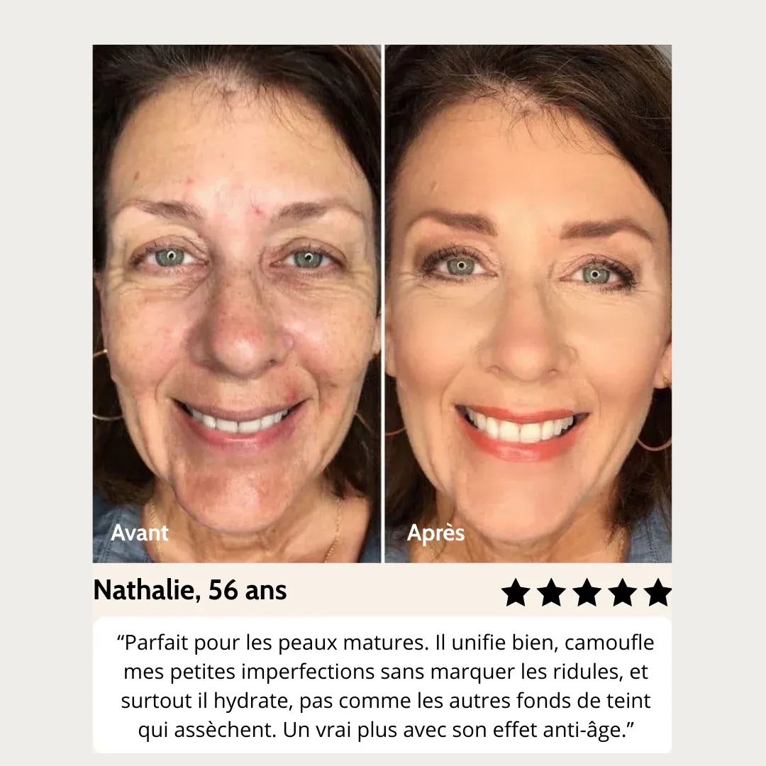 À 68 ans, je ne pensais plus trouver un fond de teint aussi naturel. Il floute mes rides, atténue mes taches… et me donne vraiment meilleure mine. Même ma petite-fille l’a vu tout de suite"