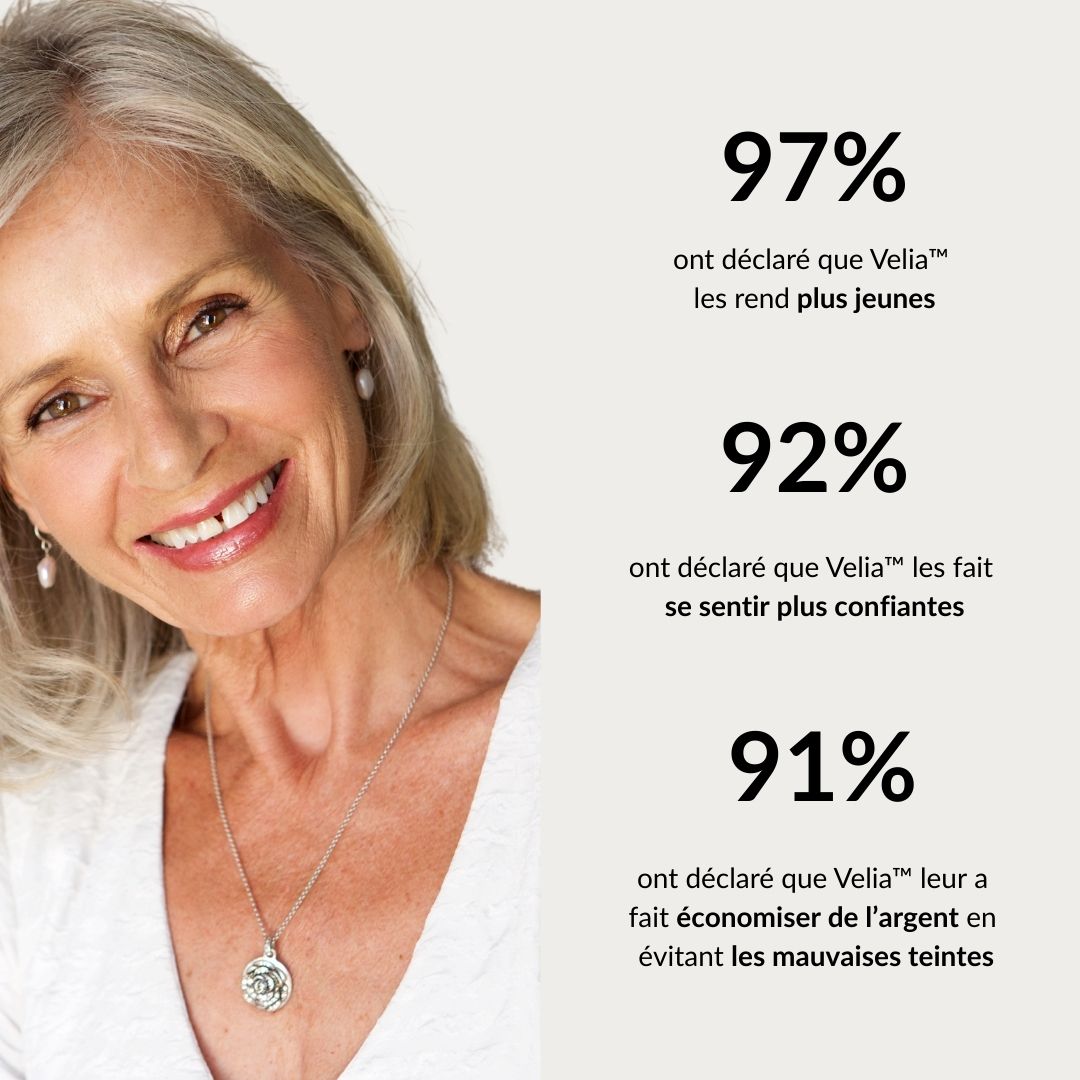 Pas besoin d’aller en parfumerie ou de tester 5 teintes au hasard. Velia™ vous propose une expérience sans pression, directement chez vous.