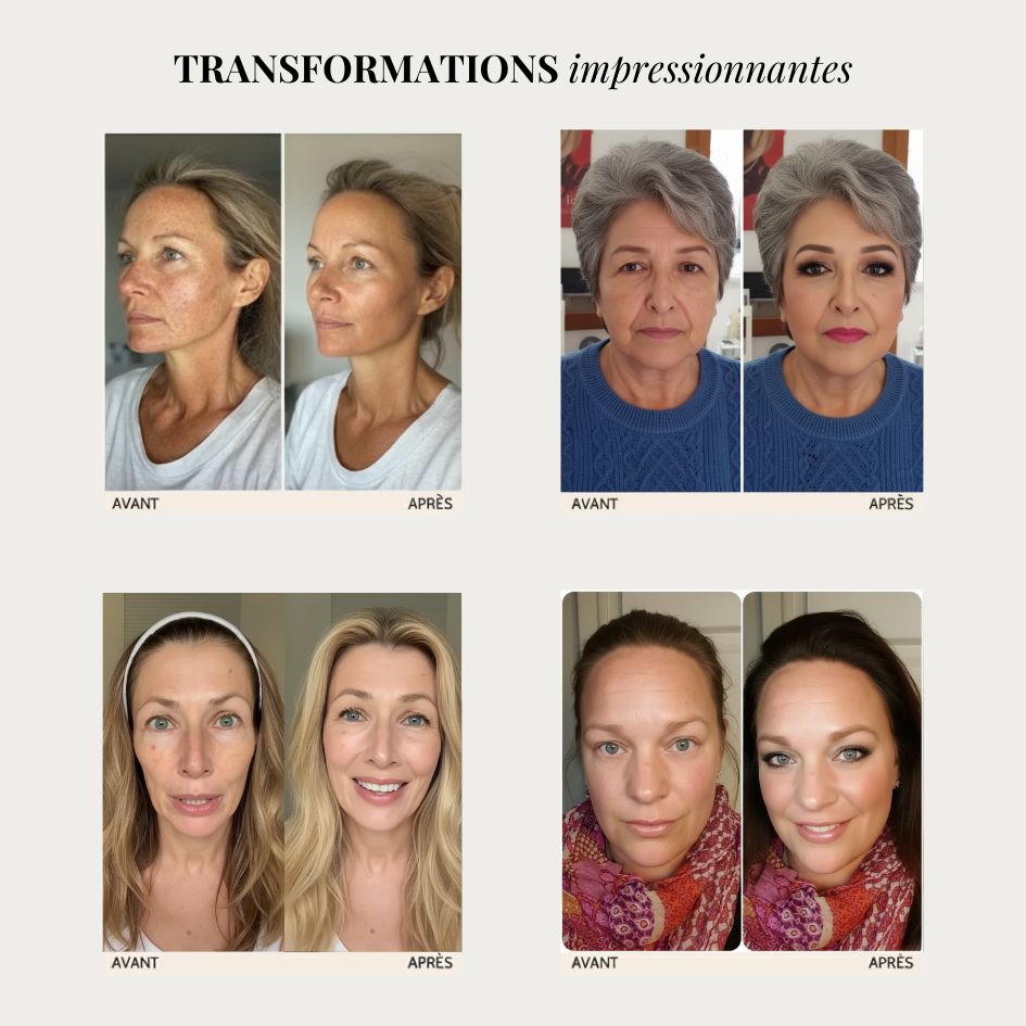 Trop couvrant, trop épais, trop visible… la majorité des fonds de teint classiques s’infiltrent dans les ridules et finissent par accentuer ce que l’on voulait justement atténuer. Résultat : un effet plâtre qui vieillit au lieu d’embellir.
